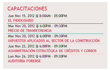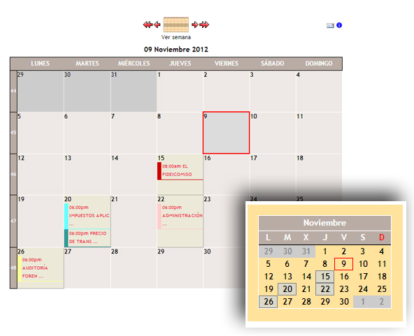 El portal posee un sistema de administracion de los eventos o capacitaciones via un formulario, el mismo puede ser administrado desde el Back-END con la funcionalidad de que presenta un mini-calendario en la parte frontal y un calendario mas completo donde muestra los eventos con mas detalles.